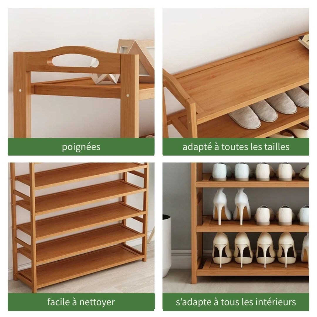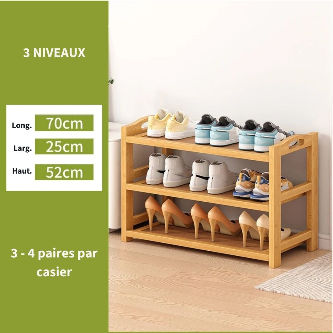 Transformez votre espace de rangement avec l'étagère à chaussures en bois de bambou. Avec sa conception élégante et sa durabilité incomparable, cette étagère ajoute une touche de sophistication à votre intérieur. Pratique et fonctionnelle, elle vous permettra d'organiser votre collection de chaussures avec style.