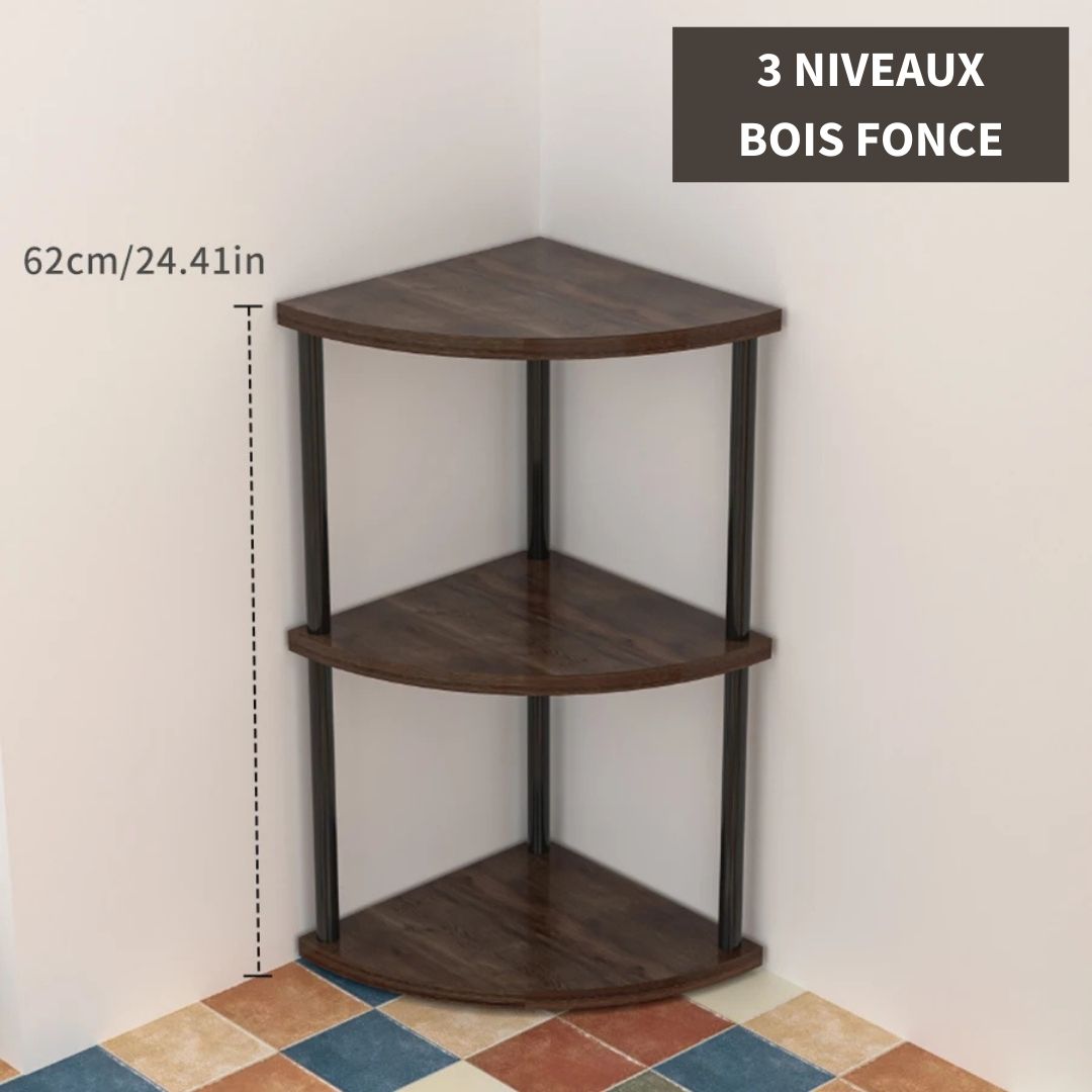 Ajoutez une Touche Élégante à Votre Espace avec notre Étagère d'Angle en Bois Foncé