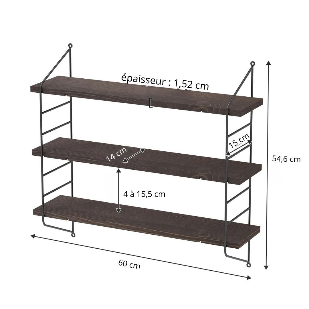 Transformez votre espace de vie en un lieu à la fois fonctionnel et esthétique avec notre étagère murale métal industriel et bois. Pratique et élégante, cette étagère apportera une touche de modernité à votre décoration, tout en offrant un espace de rangement optimal pour vos objets du quotidien.