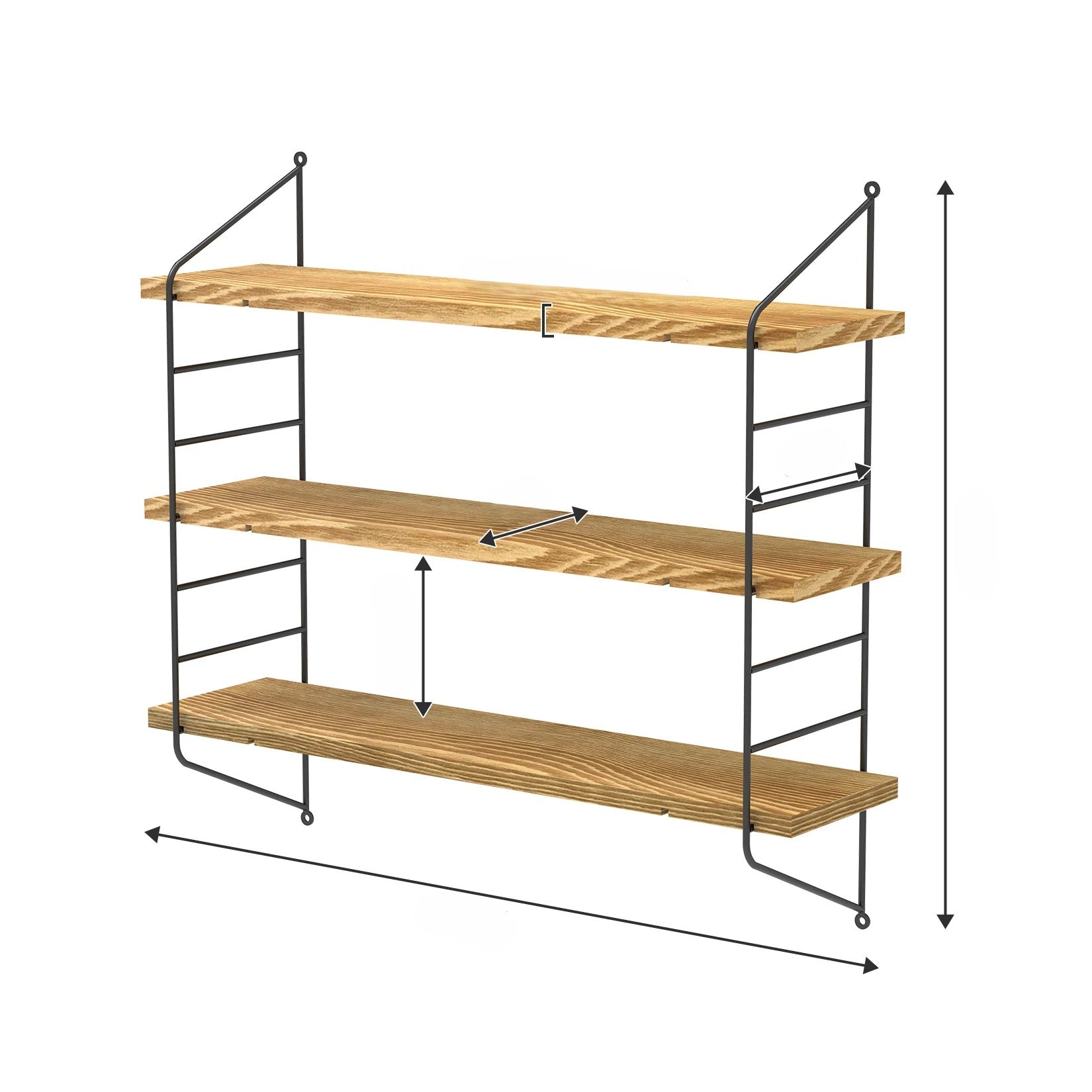 • Étagère flottante à 3 niveaux en bois de pin naturel